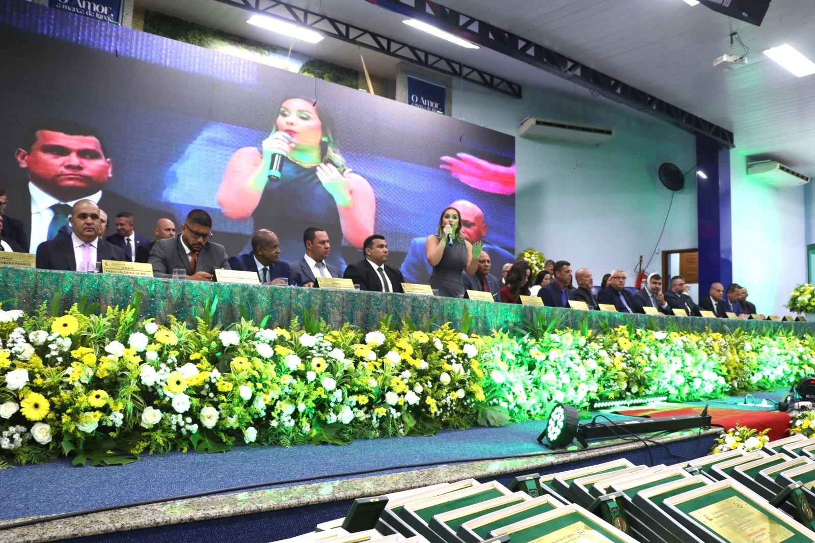 Durante a sessão solene, foram concedidos títulos de Cidadania Araruamense e a Medalha Tupinambá, honrarias entregues a personalidades que se destacam por relevantes serviços prestados ao município.