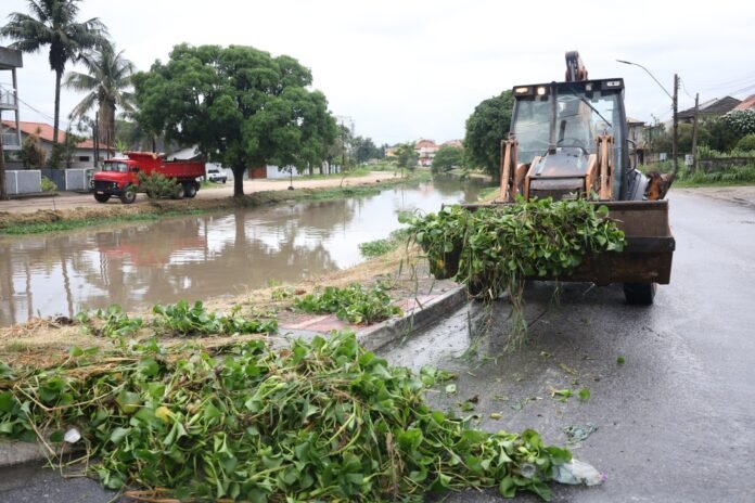 Paralelamente, as equipes da Secretaria Municipal de Serviços Públicos continuam com os trabalhos de limpeza preventiva e dragagem do Rio Mataruna, ações fundamentais para evitar inundações. No local, estão sendo utilizados uma escavadeira, duas retroescavadeiras e quatro caminhões, que atuam na retirada de plantas aquáticas, como as gigogas, e na desobstrução do leito do rio, especialmente na região da Ponte do Rio Mataruna, melhorando o escoamento da água.