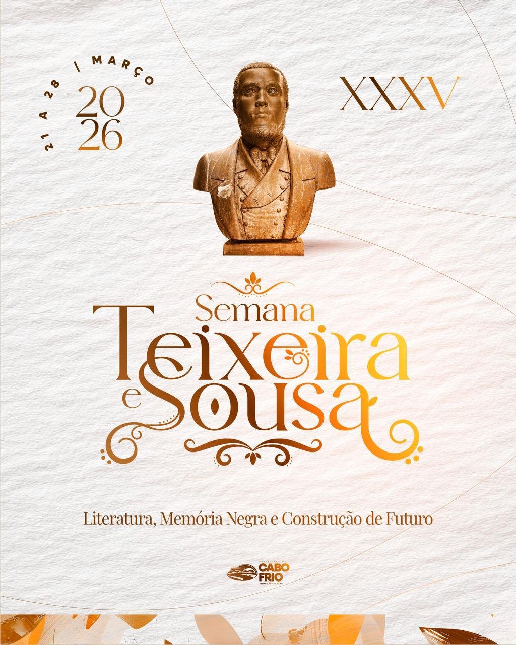 Antônio Gonçalves Teixeira e Sousa, homem negro e cabo-friense, foi escritor, poeta e dramaturgo, autor do primeiro romance brasileiro, O Filho do Pescador. Falecido em 1861, aos 49 anos, Teixeira e Sousa foi um autor do primeiro período romancista brasileiro. Criada por meio da Lei Municipal nº 1.106/91, a Semana Teixeira e Sousa faz parte do calendário oficial do município desde 2012 e passou a constar também no calendário oficial de eventos do Estado do Rio de Janeiro pela Lei Estadual nº 6.290/12. Em sua 35ª edição, as atividades serão conduzidas e desenvolvidas até o dia 28 de março, utilizando a obra “Cornélia” como base. Neste ano, a Semana conta ainda com o apoio da Prolagos, da Associação de Hotéis e Turismo de Cabo Frio, das pousadas Aquários, Mar da Vila e do Convention Bureau de Cabo Frio.