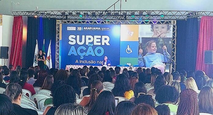 A Prefeitura de Araruama, por meio da Secretaria Municipal de Educação, realizou o evento Super Ação 2025, que promoveu uma profunda reflexão sobre inclusão nas escolas, e reuniu cerca de 600 pessoas no Centro de Convenções. O ponto alto foi a palestra “A Inclusão na Integridade do Ser”, ministrada pelo psicanalista, pedagogo, especialista em Educação Infantil, e pós-graduado em TEA – Transtorno do Espectro Autista, Geraldo Peçanha.