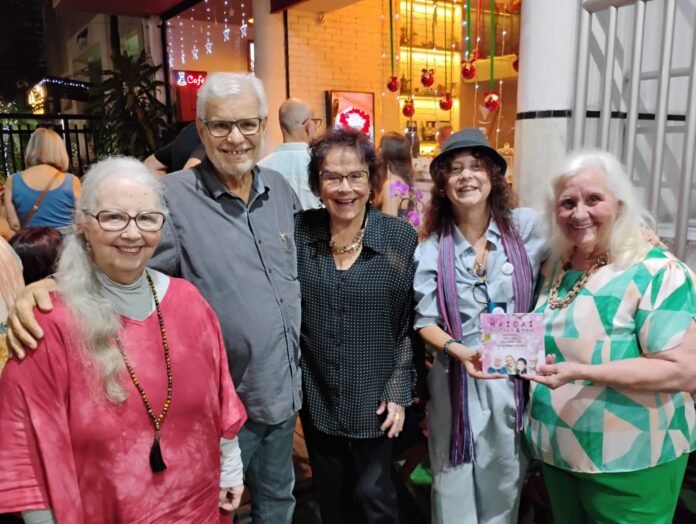 Dezenas de pessoas prestigiaram o lançamento do livro “Hacai Escrito a 4 Mãos”, no último dia 26/11, na Da Vinci`s Cafereria Gourmet , em Icaraí. A obra é uma coletânea de Haicais escritos pelo escritor Paulo Roberto Cechhetti e as escritoras Ana Caldeira, Gilda Uzeda, Leda Mendes Jorge