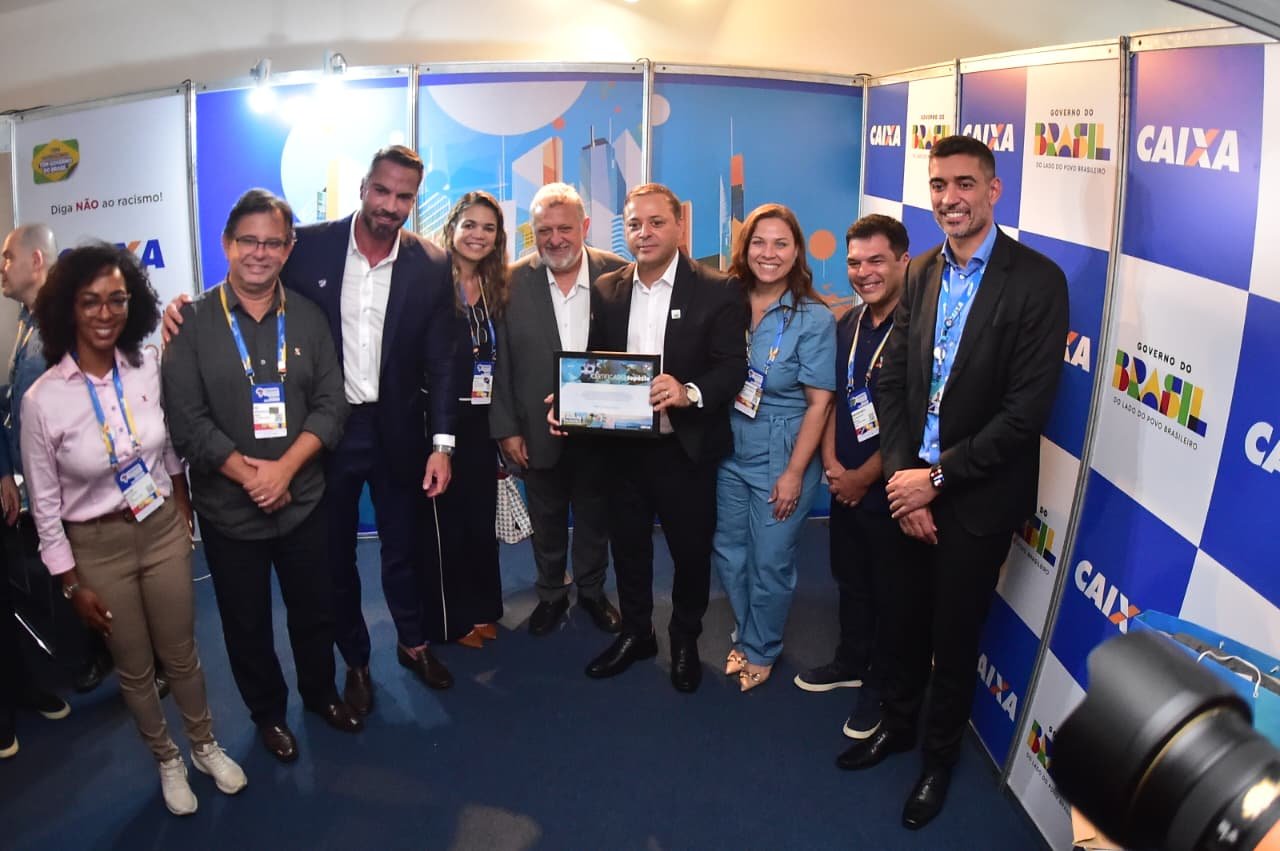 Selo CAIXA Gestão Sustentável – Após a abertura, o prefeito Rodrigo Neves recebeu do presidente da Caixa Econômica Federal, Carlos Vieira, o Selo Caixa de sustentabilidade para Niterói. O Selo CAIXA Gestão Sustentável tem como objetivo apoiar os municípios no cumprimento das metas da Agenda 2030 da Organização das Nações Unidas (ONU), por meio da implementação dos Objetivos de Desenvolvimento Sustentável (ODS).