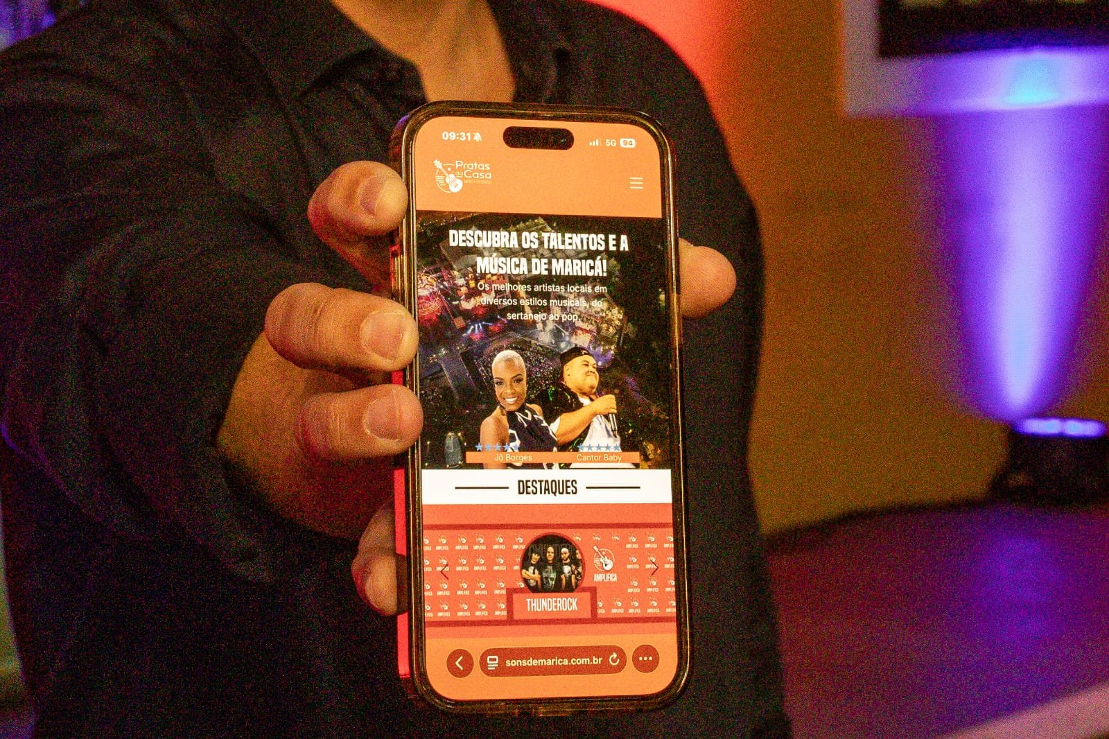 A Prefeitura de Maricá, por meio da Secretaria de Turismo, Comércio, Indústria e Mercado Interno, promoveu nesta terça-feira (11/11), no Centro, o lançamento do aplicativo “Pratas da Casa”. A plataforma será voltada para a divulgação e contratação dos artistas do município, destacando os estilos musicais de cada um e informando os locais onde irão se apresentar.