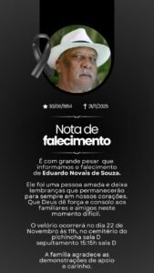 Eduardo deixa enlutados a esposa, os filhos e a irmã, Cris Novais, além da saudade eterna nos corações de todos que conviveram com ele e reconheceram sua entrega às causas coletivas.