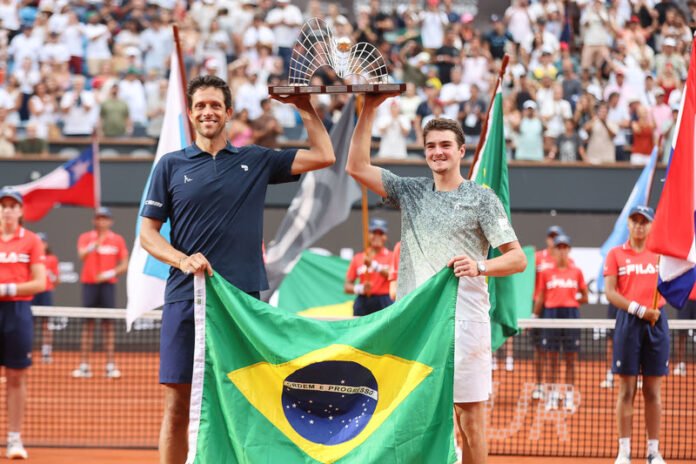 João Fonseca e Marcelo Melo conquistaram, neste domingo (22), o título de campeões do Rio Open nas duplas. Os brasileiros mostraram poder de reação na final e bateram de virada o holandês Robin Haase e o alemão Constantin Frantzen por 2 sets a 1, com parciais de 4-6, 6-3 e 10-8, em uma decisão acompanhada de perto pelo público na quadra central Guga Kuerten.